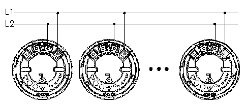 端子L1、L2分別接信號(hào)線L1和L2,無極性,信號(hào)線采用ZR-RVS-2×1.5mm2雙絞線。