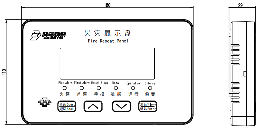 配接目前所有在售火災報警控制器,采用192×64點陣式液晶,顯示信息豐富,顯示效果清晰。
