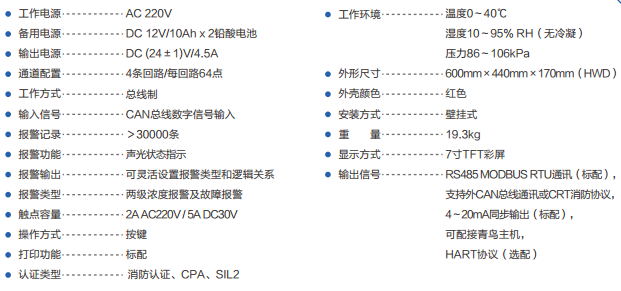 VT320H采用壁掛安裝方式,最多可同時(shí)接入256點(diǎn)CAN總線數(shù)字輸出信號的氣體探測器。當(dāng)環(huán)境中探測到的氣體濃度達(dá)到或超過預(yù)置報(bào)警值時(shí),報(bào)警器立即發(fā)出警報(bào),可同時(shí)驅(qū)動(dòng)風(fēng)機(jī)、電磁閥等外接設(shè)備。廣泛應(yīng)用于冶金、石油石化、燃?xì)?、化工、商服等領(lǐng)域。