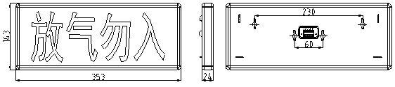 具有“放氣勿入”紅色發(fā)光標志,背景為白色,文字高度為107mm。