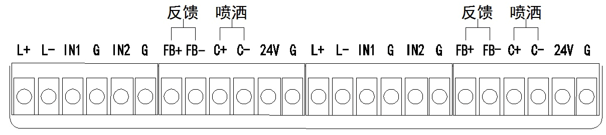 終端組件輸入端:連接主機(jī)噴灑啟動(dòng)端子C+、C-。