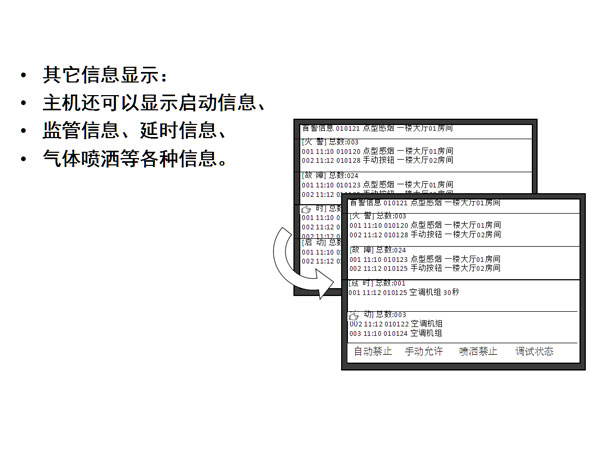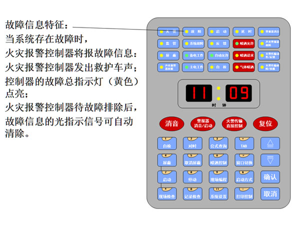 控制器可配置多塊手動消防啟動盤,完成對總線制外控設(shè)備的手動控制;可配置多塊14路直接控制盤,完成對消防控制系統(tǒng)中重要設(shè)備的控制;可擴(kuò)充消防廣播控制盤和消防電話控制盤,組成消防廣播和消防電話系統(tǒng);每個回路最多可同時配置4臺64點手動消防啟動盤+4臺14路直接控制盤+兩個消防廣播控制盤(或2個消防電話控制盤或1個消防廣播控制盤+1個消防電話控制盤)